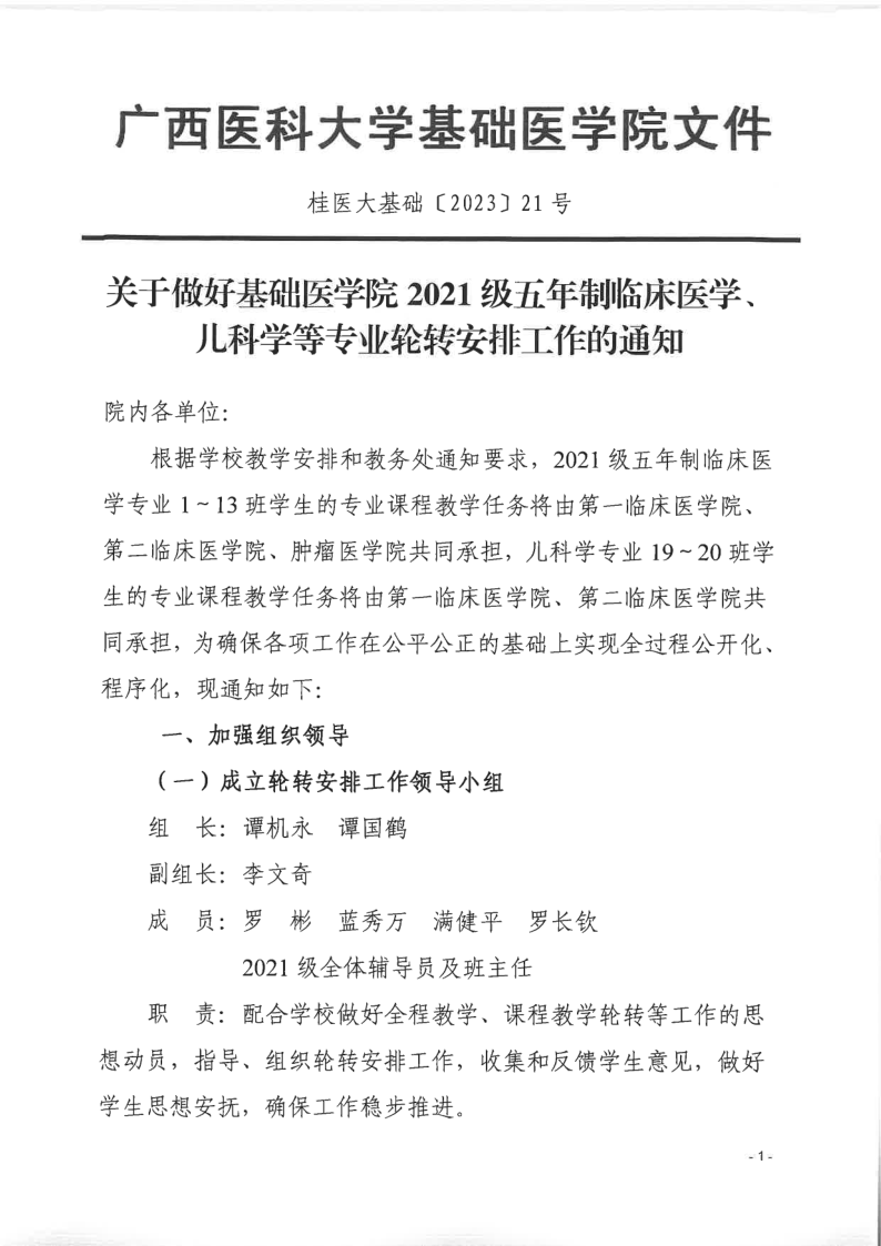 关于做好国产精品 2021级五年制临床医学、儿科学等专业轮转安排工作的通知