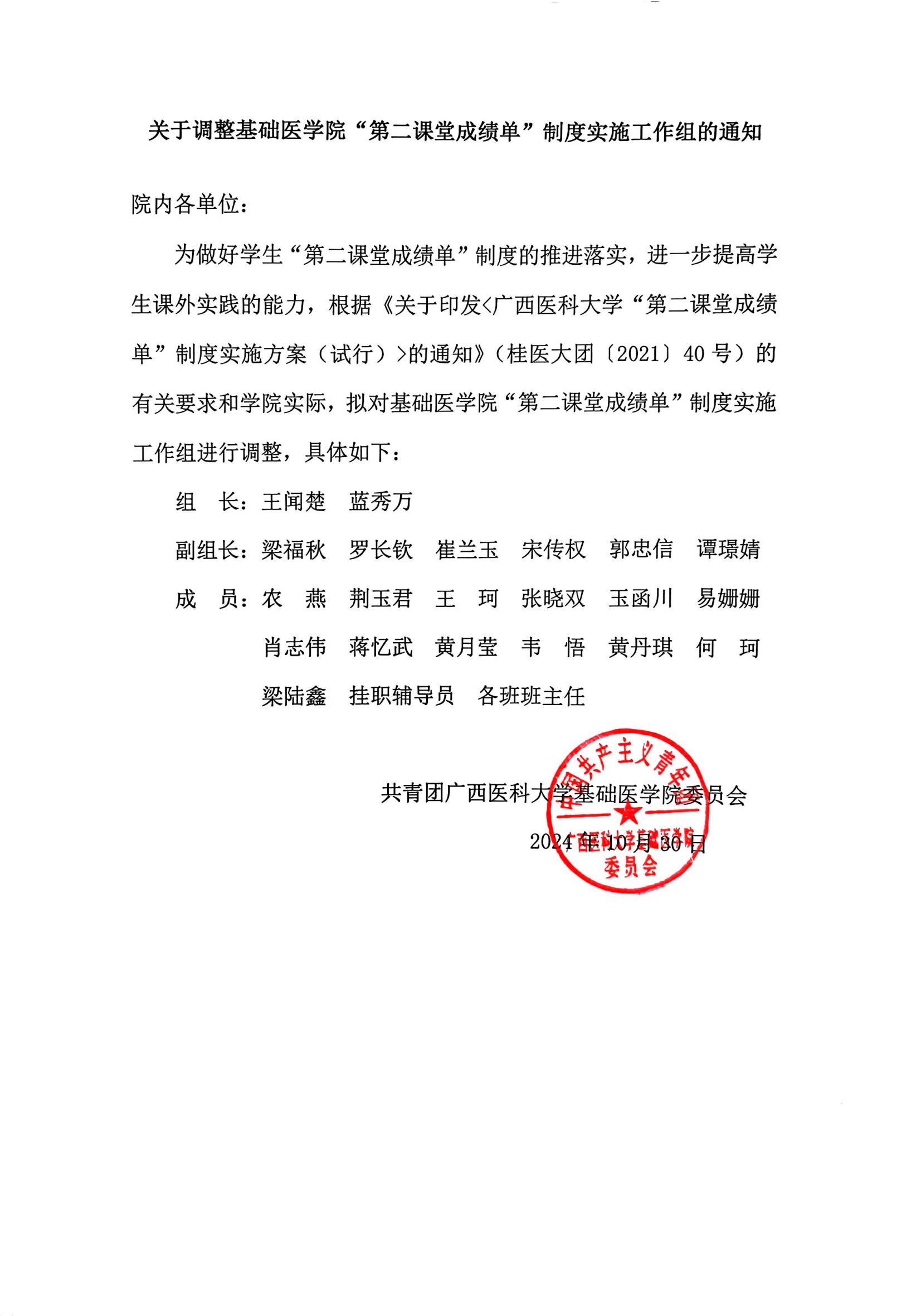 关于调整国产精品 “第二课堂成绩单”制度实施工作组的通知