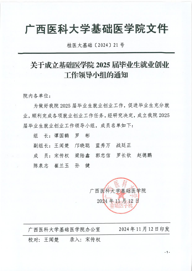 关于成立国产精品 2025届毕业生就业创业工作领导小组的通知