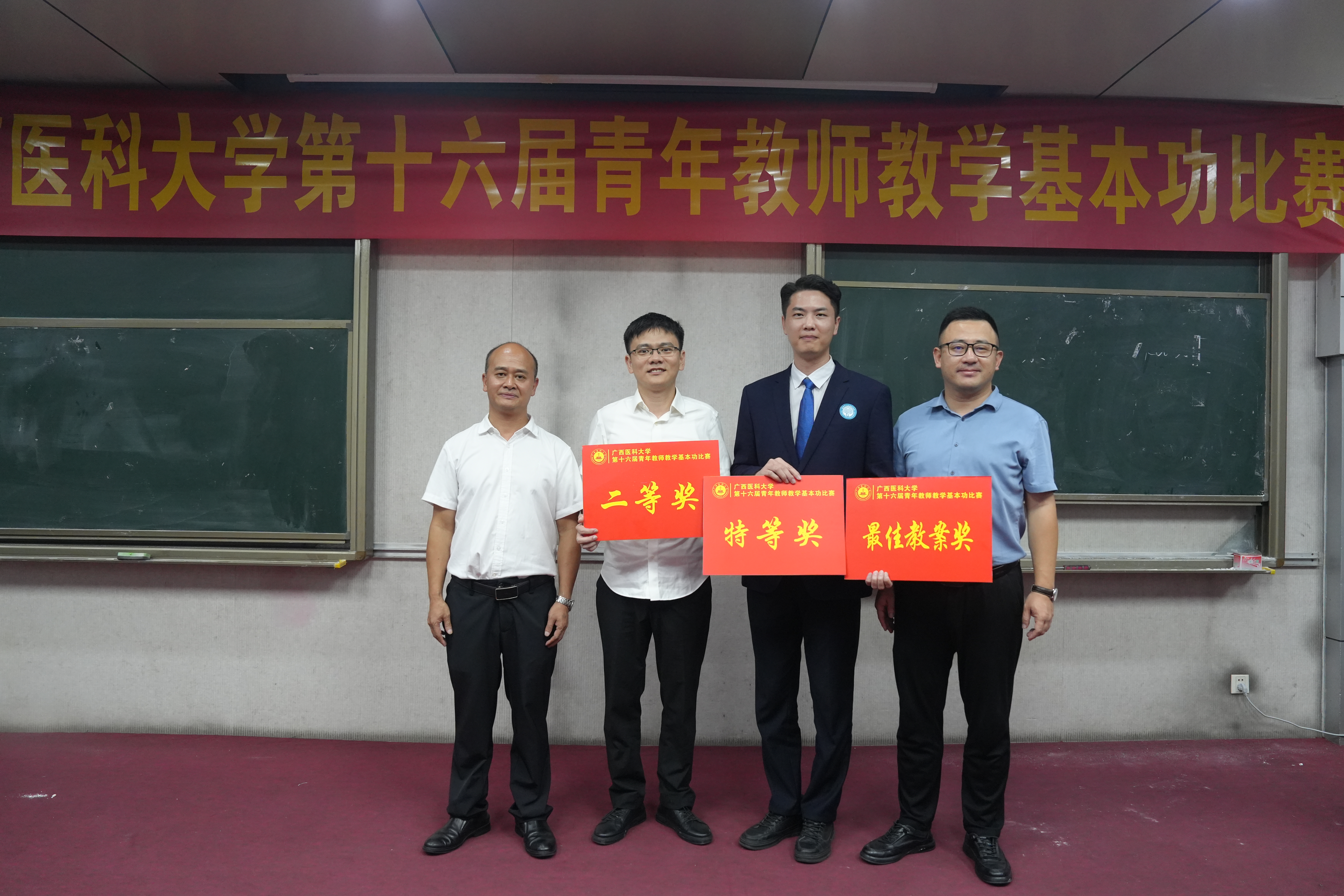 本次大赛从4月份启动起来,学院高度重视,精心组织,赛前给予参赛选手充分的培训和指导。学院人体解剖学教研室韦灿燊、免疫学教研室李晓泉两位参赛教师代表从本次比赛众多参赛选手中脱颖而出,韦灿燊老师获得特等奖和最佳教案奖,李晓泉老师获得二等奖。