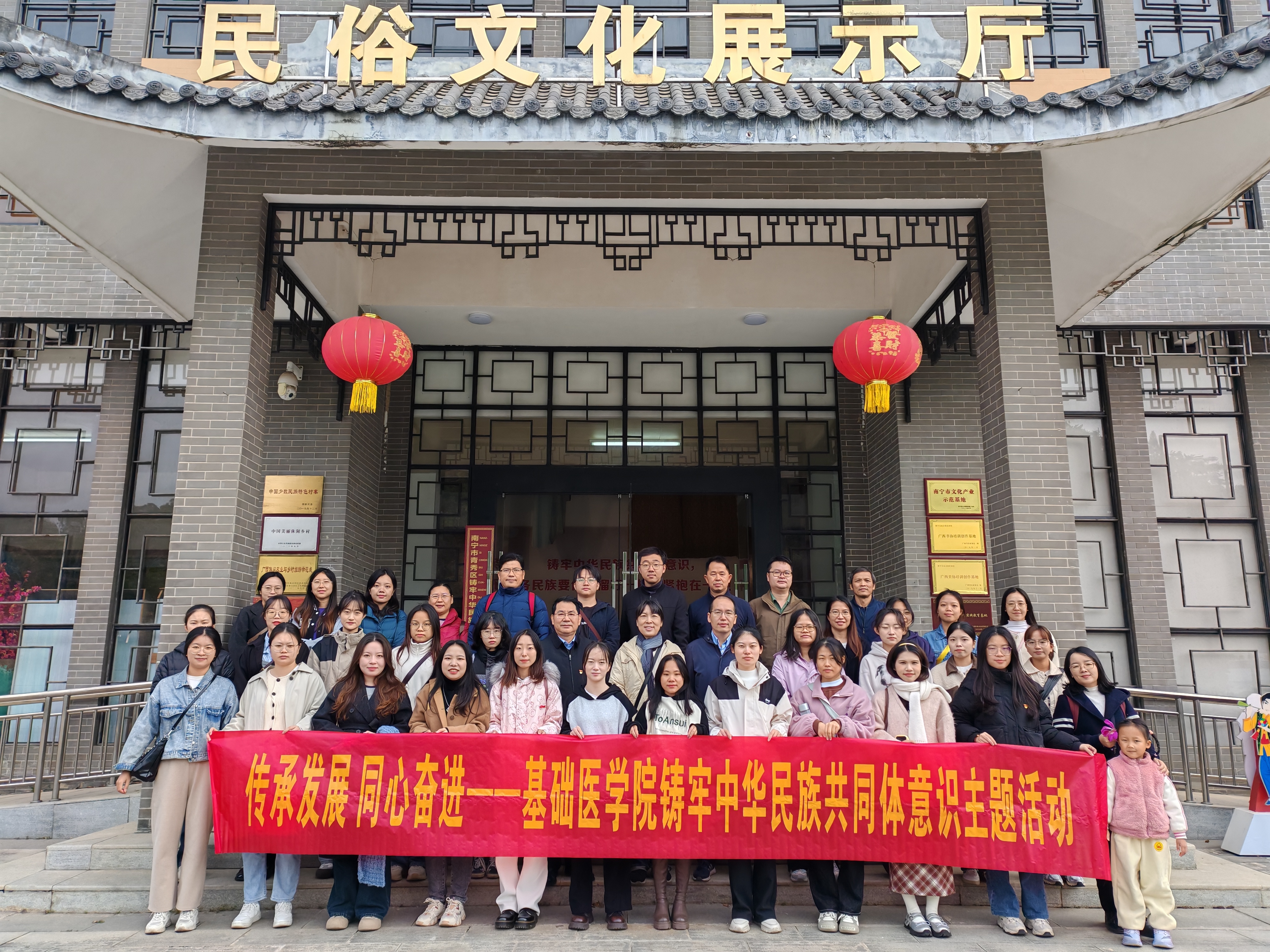 为深入学习贯彻习近平总书记关于加强和改进民族工作的重要思想,深化民族团结进步教育,铸牢中华民族共同体意识,12月8日上午,国产精品 赴青秀区首个铸牢中华民族共同体意识教育基地、中国少数民族特色村寨南阳镇古岳文化艺术村开展“传承发展 同心奋进——铸牢中华民族共同体意识主题活动”。学院师生党员代表及部分党外代表人士共40余人参加活动。