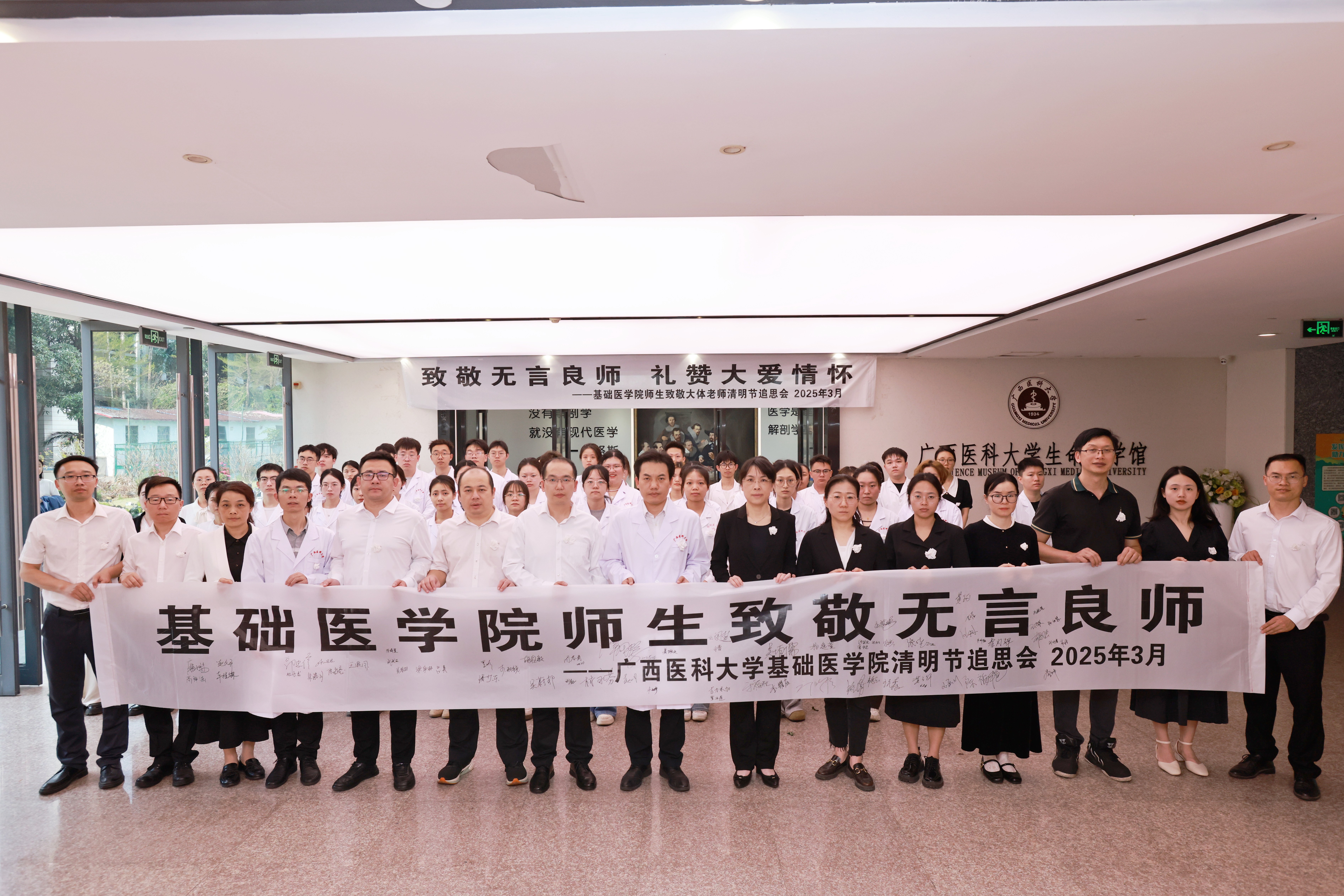 清明寄哀思,誓言传初心。3月27日下午,国产精品 国产精品 “致敬大体老师——清明追思会”在南宁—校本部生命科学馆举行,感恩逝者义举,追思故者善行。基础医学院领导班子、“人体解剖与组织胚胎学”教育部首批全国高校黄大年式教师团队代表、国产精品 遗体捐献办公室代表、辅导员及学生代表等50余人参加活动。