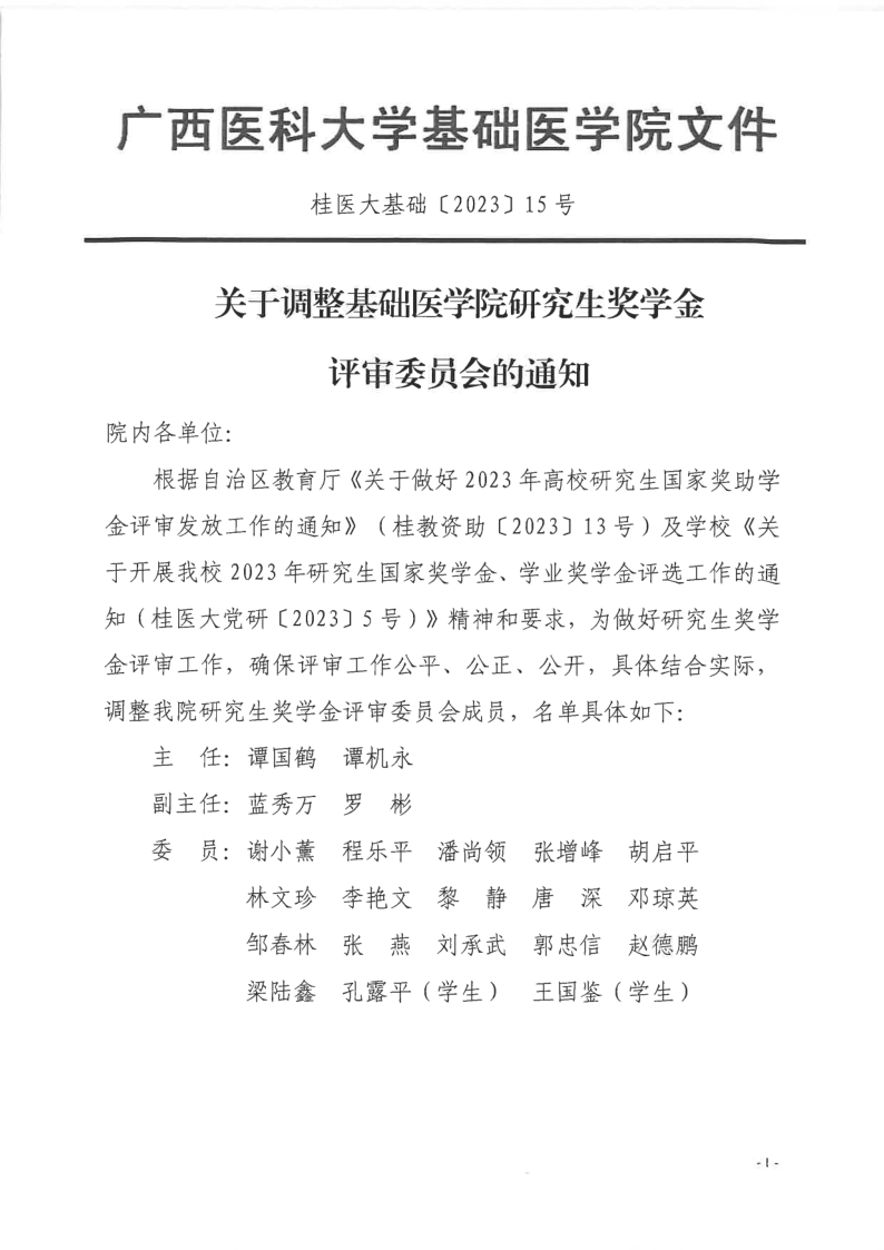 关于调整国产精品 研究生奖学金评审委员会的通知
